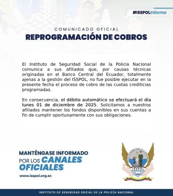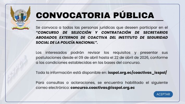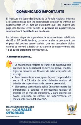 MÁS INFORMACIÓNTe recordamos que los trámites del ISSPOL lo puedes realizar desde la comodidad de tu hogar a través del SIISSPOL WEB.