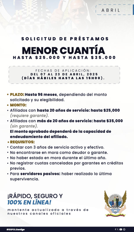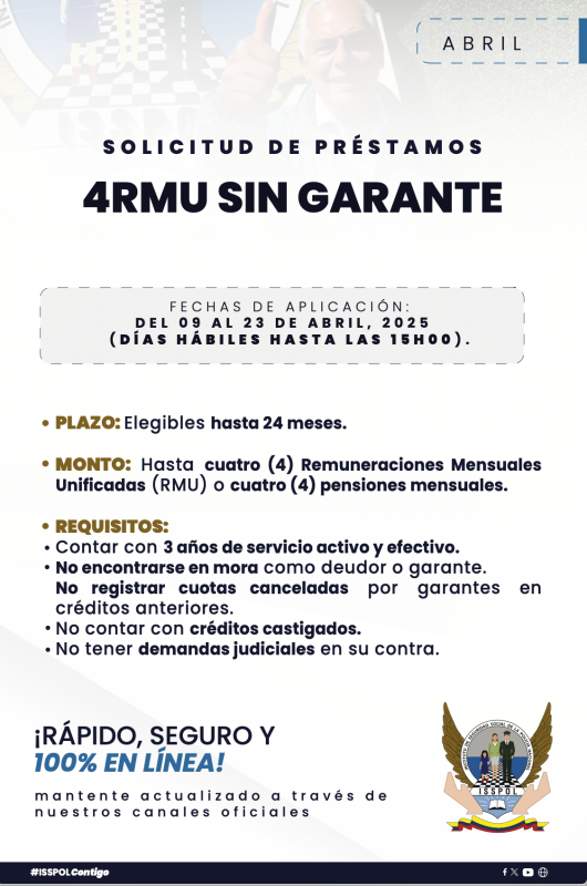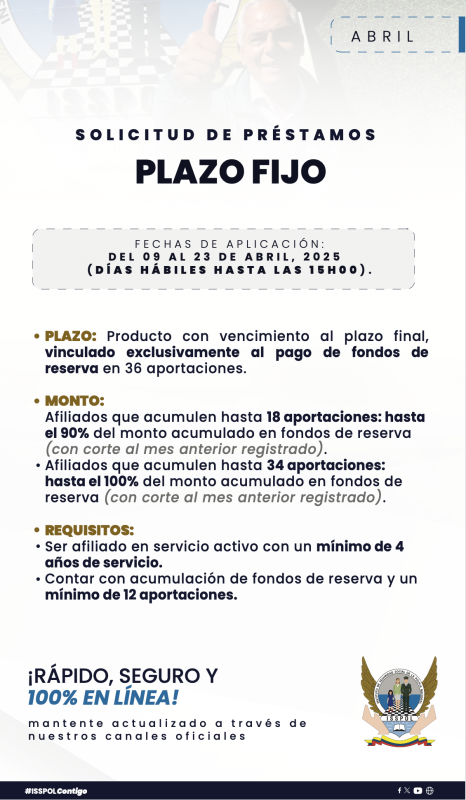 Comunicados, Noticias¡APERTURA DE PRÉSTAMOS! Posted on 4 de abril de 20254 de abril de 2025 by Isspol Informativo 04 Abr Isspol Informativo PRECANCELACIONES DE PRÉSTAMOS REPORTE DE SINIESTROS DE VIVIENDA