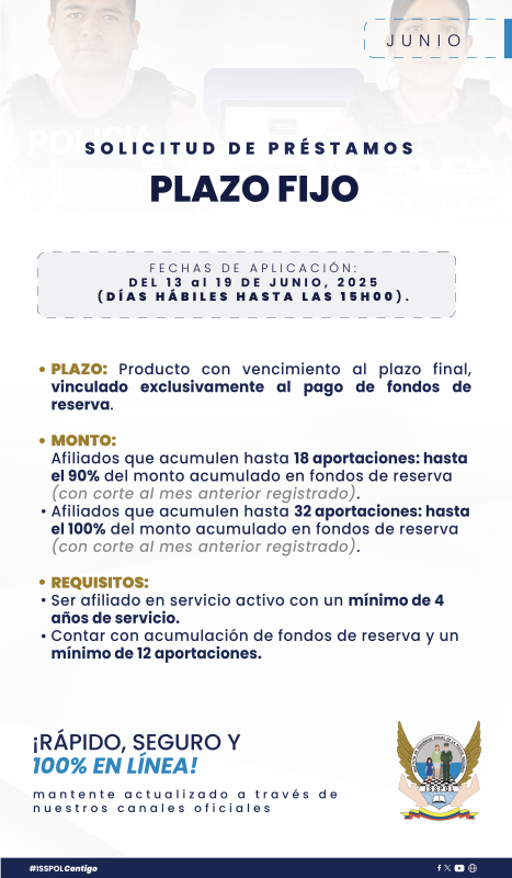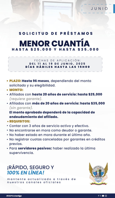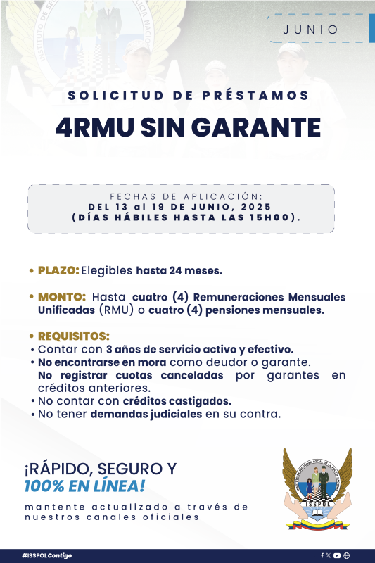 ComunicadosAPERTURA DE PRÉSTAMOS JUNIO 2025 Posted on 9 de junio de 20259 de junio de 2025 by Sharon Armas 09 Jun PRÉSTAMO MENOR CUANTÍA PRÉSTAMO PLAZO FIJO PRÉSTAMO 4RMU Sharon Armas ACTUALIZACIÓN DE FORMATOS PARA SOLICITUDES DE PRÉSTAMOS PAGO DE CUOTAS VENCIDAS