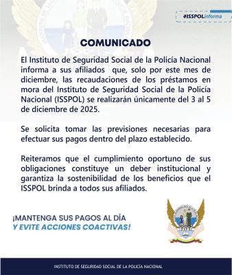 Comunicados, NoticiasCOMUNICADO IMPORTANTE -FECHAS DE PAGO Posted on 3 de diciembre de 20258 de diciembre de 2025 by ISSPOL informa 03 Dic ISSPOL informa FECHAS DE PAGO DICIEMBRE 2025 SISTEMAS DE TRANSPARENCIA